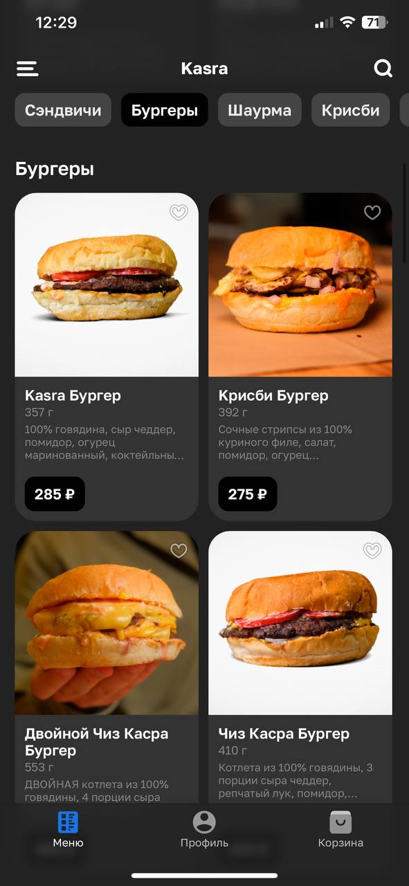 100% говядина, сыр чеддер, помидор, огурец маринованный, коктейльный фирменный соус, авторская булочка.