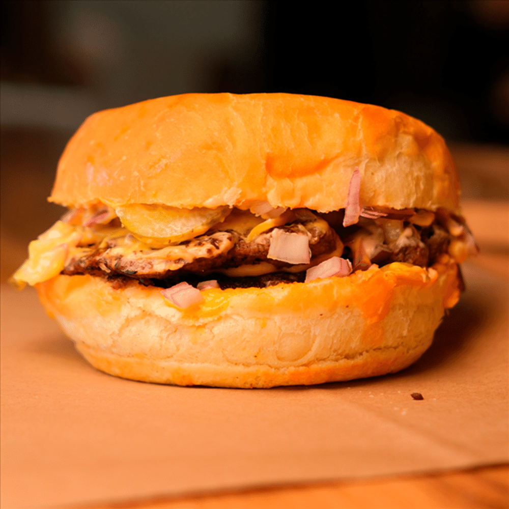 Сочные стрипсы из 100% куриного филе, салат, помидор, огурец маринованный, коктейльный фирменный соус, авторская булочка.